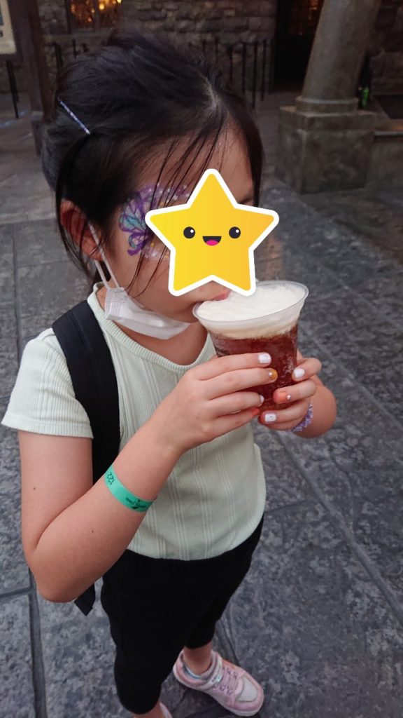 ハリー・ポッターエリアでは、名物のバタービールを飲みました。
