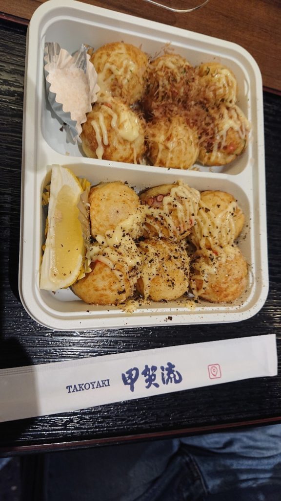 USJの近く、シティウォークというショッピング施設に、たこ焼き屋さんが集まっているエリアがあって、そこで食べました^^